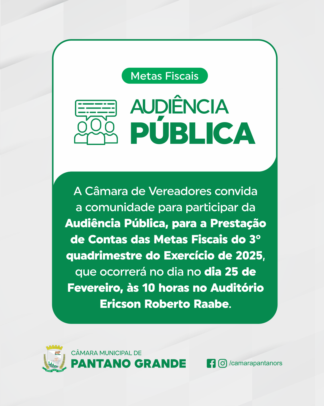 Audiência Pública de Prestação de Contas acontece na próxima quarta...